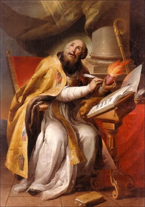 På biletet ser det ut til at Augustin har eit hjerte tennt i brann. Det er sjølvsagt symbolsk Guds Ande og kjærleik i hjertet, det er den åndelege røyndomen som tilfredsstiller vår lengsel. Den religiøse lengselen kan også forståast som tørste etter det levande vatnet. Dette er meir fundamentalt i kristendomen enn filosofering. Mi tru, … Continue reading Lovnad, profeti og filosofihistorie 3. Apologetikk; forsvare den kristne trua overfor dei som var opplærde i antikk filosofi. Slik vart middelalderen dominert av filosofi og teologi.
