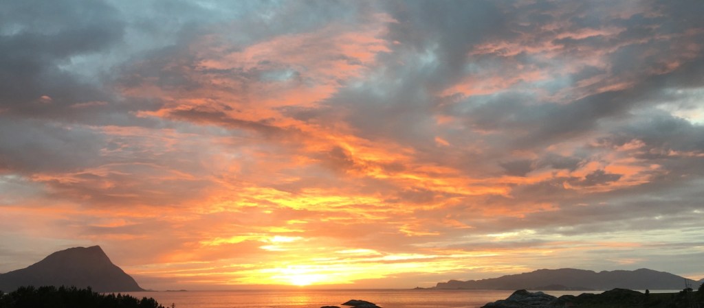 In the background to the left of the picture we see West Cape, which is where the coast bends off between Bergen and Trondheim. To the right are the southernmost islands of Sunnmøre. The coastline from the West Cape northwards to Trøndelag is called Møre, so Earl Møre had once the task of protecting this area. In Trøndelag it was Lade-jarl who ruled.
